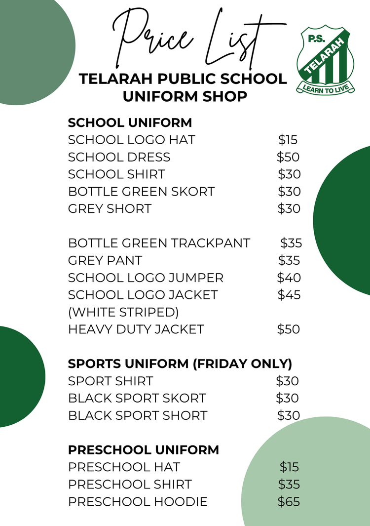 If you would like to purchase a uniform in person, please come to our Office during school hours.